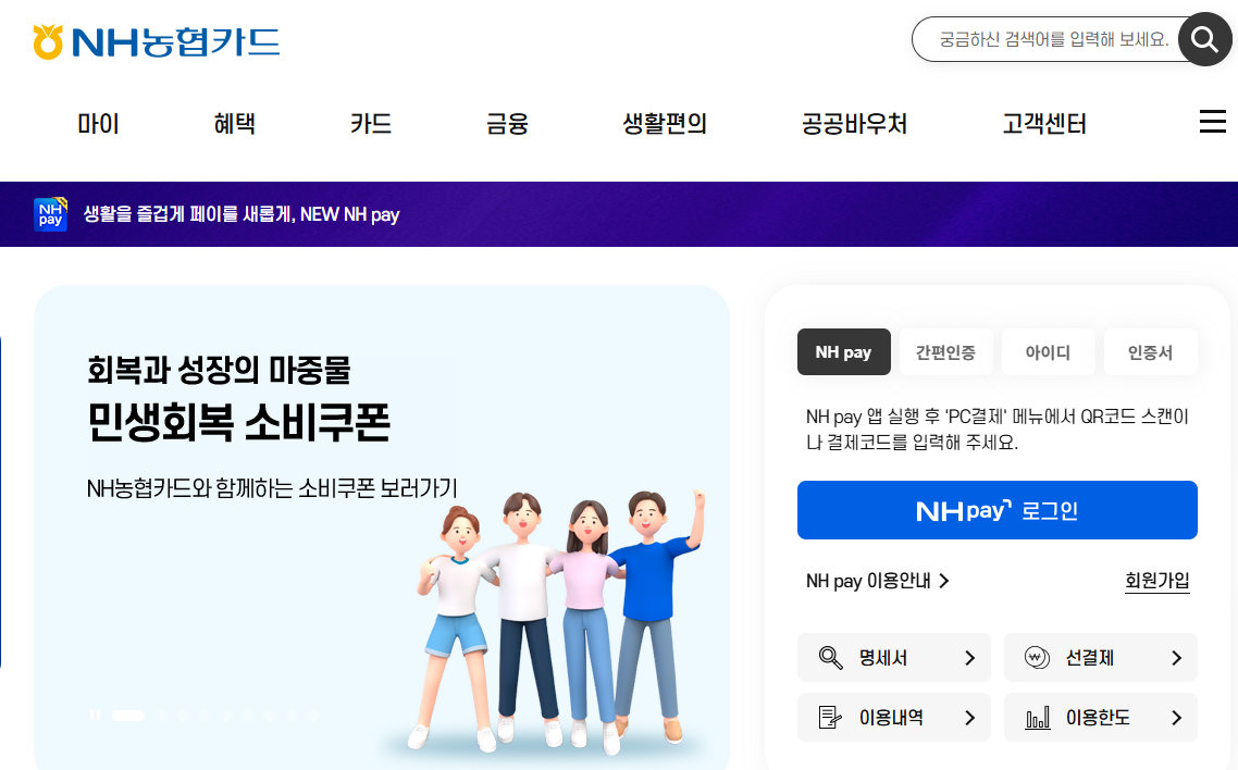 NH농협카드 홈페이지 바로가기