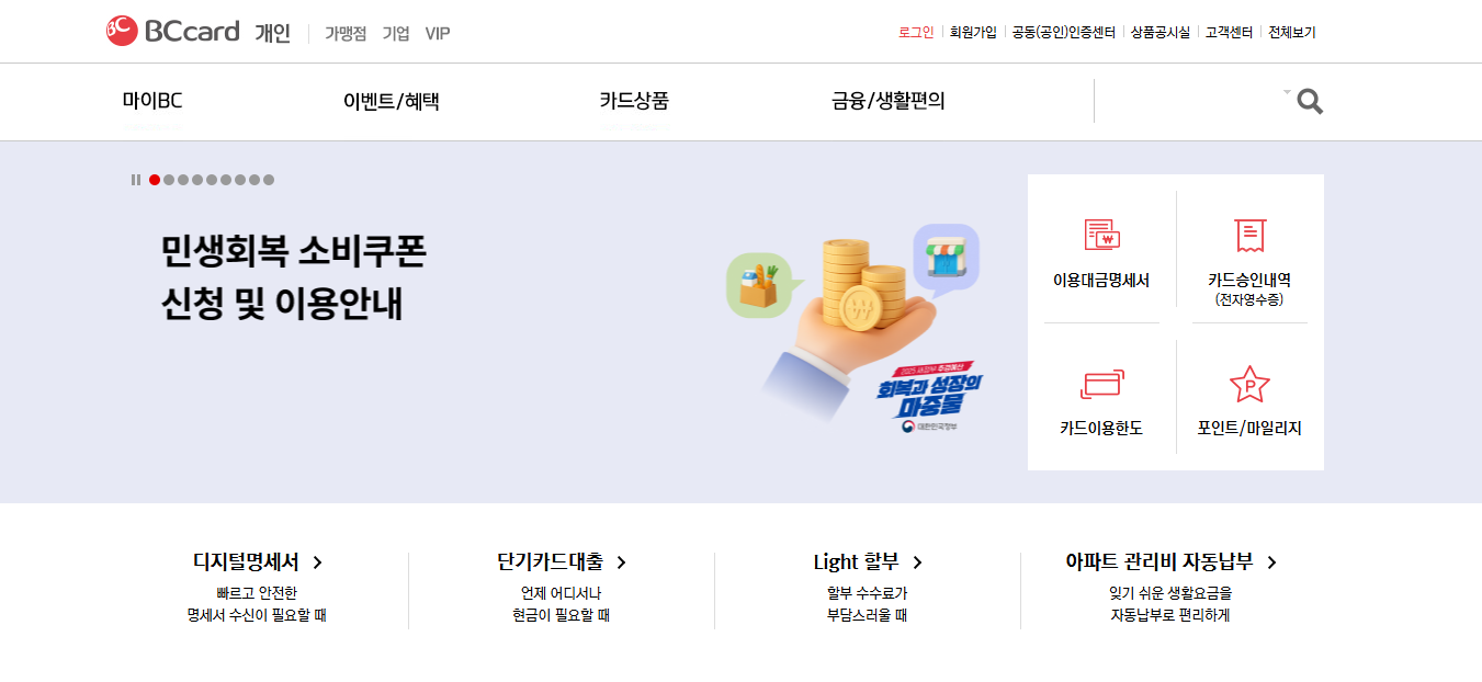 - 1번: 개인 회원 관련 문의 (이용한도, 결제금액 등)